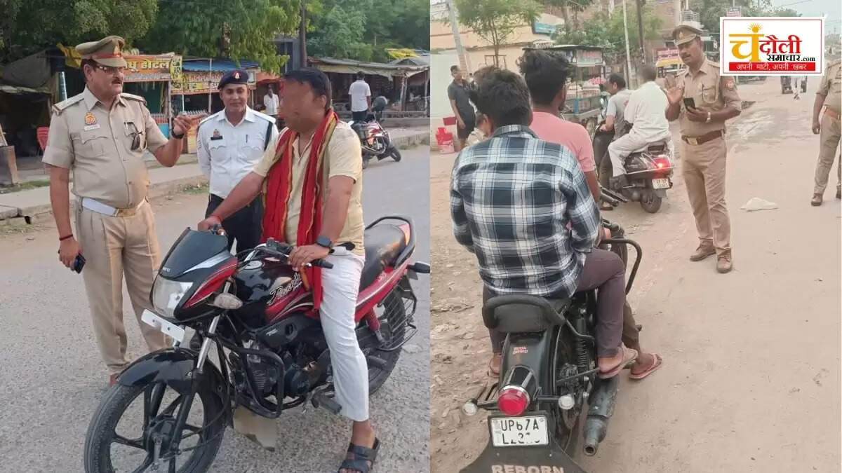 चंदौली यातायात पुलिस टीम चंदौली द्वारा विशेष चेकिंग अभियान के दौरान बिना हेलमेट के वाहन चलाने वाले बाइक राइडर्स और तीन सवारी वाले बाइक चालकों सहित कुल 170 वाहनों का यातायात के विभिन्न धाराओं में चालान किया है। साथ ही लोगों को यातायात के नियमों का पालन करने के लिए आगाह किया।