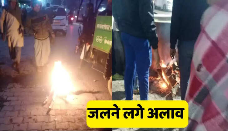 राहगीरों एवं गरीब लोगों के जल रहे अलाव