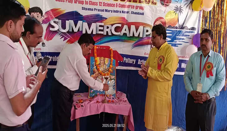 चन्दौली नगर स्थित आलोक इण्टर कालेज गौतमनगर चन्दौली में आज दिनांक 21 मई 25 से तीन दिवसीय समर कैम्प का आयोजन किया गया। आयोजन के प्रथम दिवस पर विद्यालय के निदेशक डॉ आजाद बहादुर के द्वारा दीप प्रज्जवलन के कार्यक्रम की शुरुआत हुयी। उसके बाद बच्चों ने विद्यालय की प्रार्थना का सस्थर पाठ किया। इसके बाद म्युजिकल योगा का अभ्यास किया। बच्चों के द्वारा अपने हाथों के छाप द्वारा समर कैम्प का रंग बिरंगा बैनर तैयार किया गया। जो विविधता में एकता का संदेश देता हुआ प्रतीत हुआ।