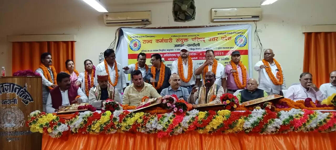 चंदौली जनपद के जिला मुख्यालय स्थित कृषि विज्ञान केंद्र में मंगलवार को राज्य कर्मचारी संयुक्त परिषद के द्वारा वार्षिक अधिवेशन संपन्न हुआ। अधिवेशन में संयुक्त रूप से पुरानी पेंशन बहाली की मांग की गई। कार्यक्रम में मुख्य अतिथि के रूप में भारत सरकार के पावर ग्रिड के स्वतंत्र निदेशक शिव तपस्या पासवान तथा मुख्य चिकित्सा अधिकारी युगल किशोर राय रहे।