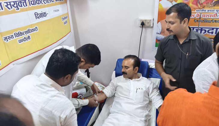 प्रधानमंत्री के जन्मोत्सव पर सैयदराजा विधायक सहित कई लोगों ने किया रक्तदान