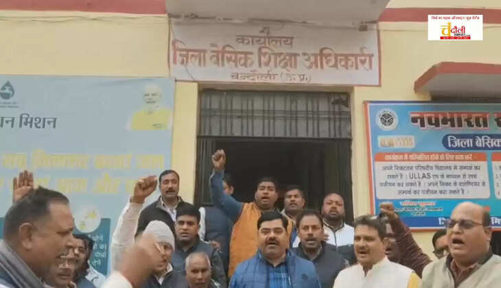 चन्दौली में लंबित मांगों को लेकर उत्तर प्रदेशीय जूनियर हाईस्कूल शिक्षक संघ ने बीएसए कार्यालय पर जोरदार प्रदर्शन किया। अधिकारियों के न मिलने पर शिक्षक गेट पर ही धरने पर बैठ गए और वेतनमान, एनपीएस व शिक्षकों के समायोजन पर ठोस कार्रवाई की मांग की।