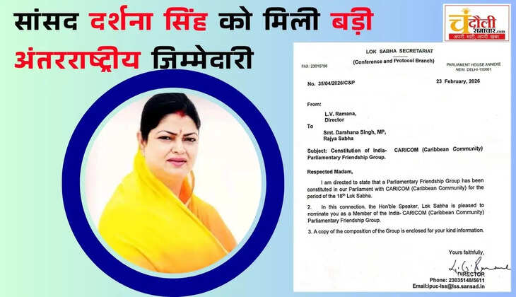 जनपद चंदौली और पूरे उत्तर प्रदेश के लिए एक बेहद गौरवपूर्ण खबर सामने आई है। चंदौली से राज्यसभा सांसद श्रीमती दर्शना सिंह को भारत और कैरेबियाई देशों के बीच संसदीय सहयोग को और अधिक सशक्त बनाने वाले प्रतिष्ठित 'भारत–CARICOM (कैरेबियन समुदाय) संसदीय मैत्री समूह' का सदस्य नामित किया गया है। लोकसभा सचिवालय के कॉन्फ्रेंस एवं प्रोटोकॉल प्रभाग द्वारा यह अहम नियुक्ति 18वीं लोकसभा की अवधि के लिए की गई है। किसी भी सांसद के लिए अंतरराष्ट्रीय स्तर पर देश का प्रतिनिधित्व करने का यह एक अत्यंत महत्वपूर्ण और गौरवशाली अवसर माना जाता है।