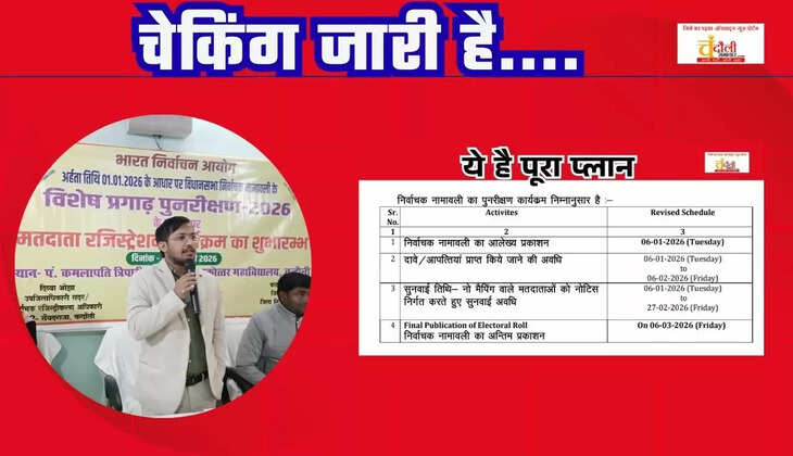 निर्वाचन आयोग के निर्देशानुसार, चंदौली जनपद में मतदाता सूची के विशेष गहन पुनरीक्षण (SIR) का कार्य तेजी से चल रहा है। जिला निर्वाचन अधिकारी चंद्रमोहन गर्ग ने बताया कि जिन नागरिकों का नाम अनंतिम सूची से कट गया है या जो नए मतदाता (18 वर्ष पूर्ण करने वाले) बनना चाहते हैं, उनके लिए 18 जनवरी (रविवार) को जिले के सभी मतदान केंद्रों पर विशेष अभियान चलाया जाएगा।
