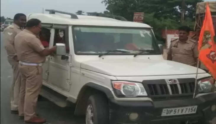नेशनल हाइवे पर कांवड़ियों से पुलिस कर रही बात