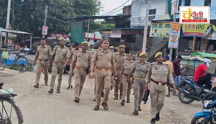 मोहर्रम व सावन माह को लेकर चंदौली पुलिस का अलर्ट, भीड़ वाले इलाकों में पैदल गश्त व फ्लैग मार्च