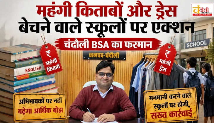 चंदौली में निजी स्कूलों की मनमानी के खिलाफ बीएसए ने कमर कस ली है। महंगी किताबों और चिन्हित दुकानों से ड्रेस खरीदने के दबाव पर विभाग ने सख्त नोटिस जारी करते हुए स्कूल संचालकों को कड़ी चेतावनी दी है।