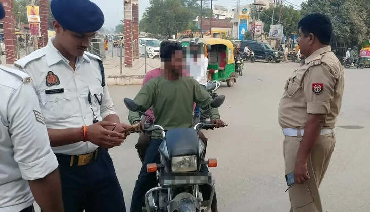 चंदौली में एक दिन में 158 बाइक सवारों के चालान कटे