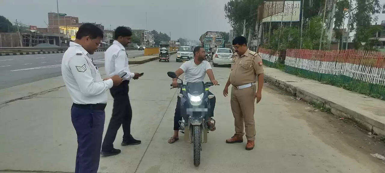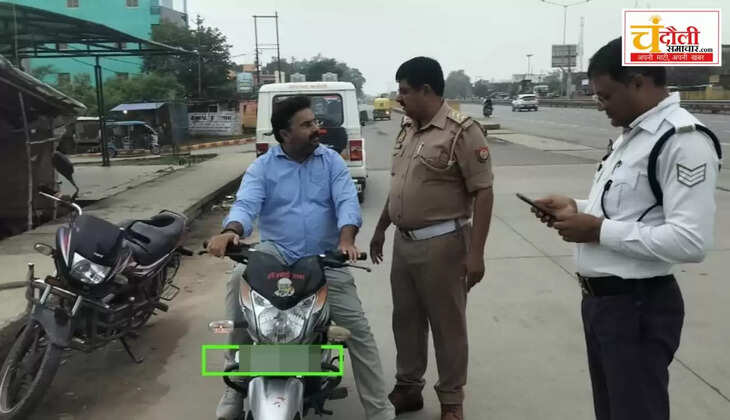 चंदौली में एक दिन में 74 बिना हेलमेट और 33 नो पार्किंग वाहनों पर कार्रवाई