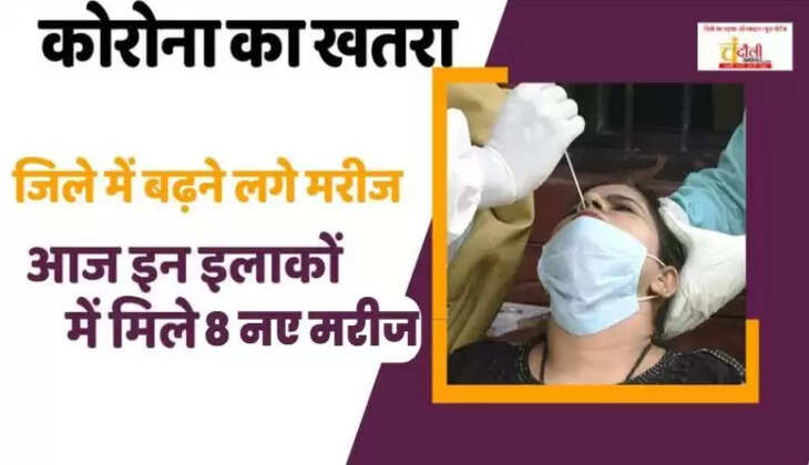 चंदौली जिले में कोरोना की एक बार फिर कई मरीज मिले हैं। इसके बाद से लोगों को सतर्क सावधान रहने की सलाह दी जा रही है। जिलाधिकारी कार्यालय से मिली जानकारी के अनुसार आज प्राप्त कोरोना जांच परिणाम में 08 लोगों की रिपोर्ट पाॅजिटिव प्राप्त हुई है। इनमें 04 महिला एवं 4 पुरूष है। ये क्रमशः ब्लाक बरहनी, चहनियां, चकिया, चन्दौली, एवं शहाबगंज के रहने वाले है। आज 06 व्यक्ति के स्वस्थ्य होने की सूचना भी प्राप्त हुई है। जनपद में कोविड जॉच हेतु आज कुल 559 नमूने संग्रहित किये गए।