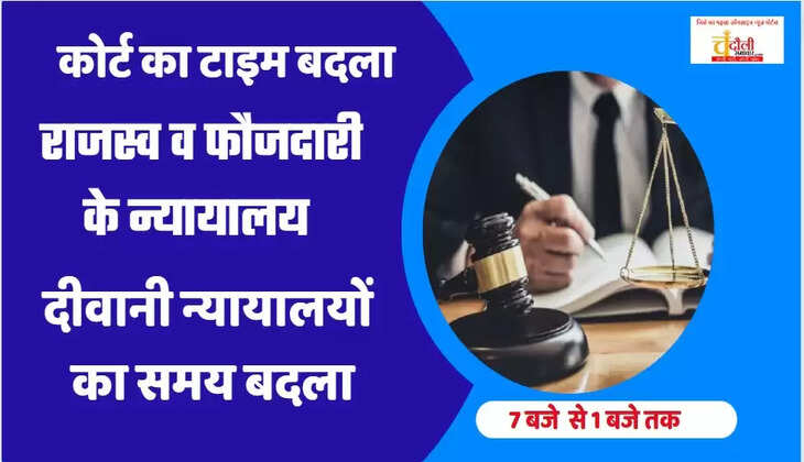 बता दें कि पूर्व वर्षों की भाँति दीवानी न्यायालय में न्यायिक कार्य अवधि प्रातः 7.00 बजे पूर्वाह्न से 1.00 बजे अपराह्न तक होने तथा अध्यक्ष सिविल बार एशोसिएशन के अनुरोध पत्र को देखते हुए जिले के राजस्व एवं फौजदारी न्यायालयों व कार्यालयों एवं अभिलेखागार (माल) का समय दिनांक 01.05.2023 से दिनांक 30.06.2023 तक समय प्रातः 8.00 बजे पूर्वाह्न से 1.00 बजे अपरान्ह तक निर्धारित किया जाता है।