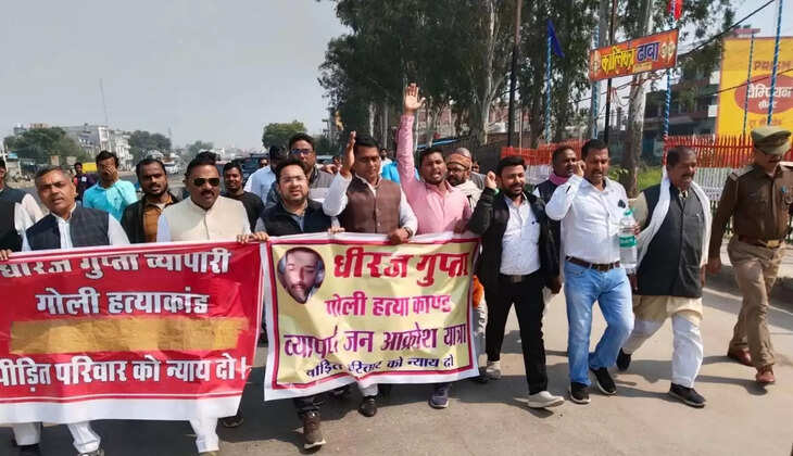 धीरज कुमार गुप्ता गोलीकांड में गिरफ्तारी न होने से नाराज लोगों ने निकाली आक्रोश यात्रा