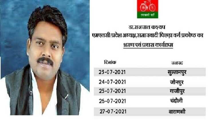 समाजवादी पिछड़ा वर्ग प्रकोष्ठ के प्रदेश अध्यक्ष माननीय डॉक्टर राजपाल कश्यप, सदस्य विधान परिषद उत्तर प्रदेश कल चंदौली जिले में आ रहे हैं।
