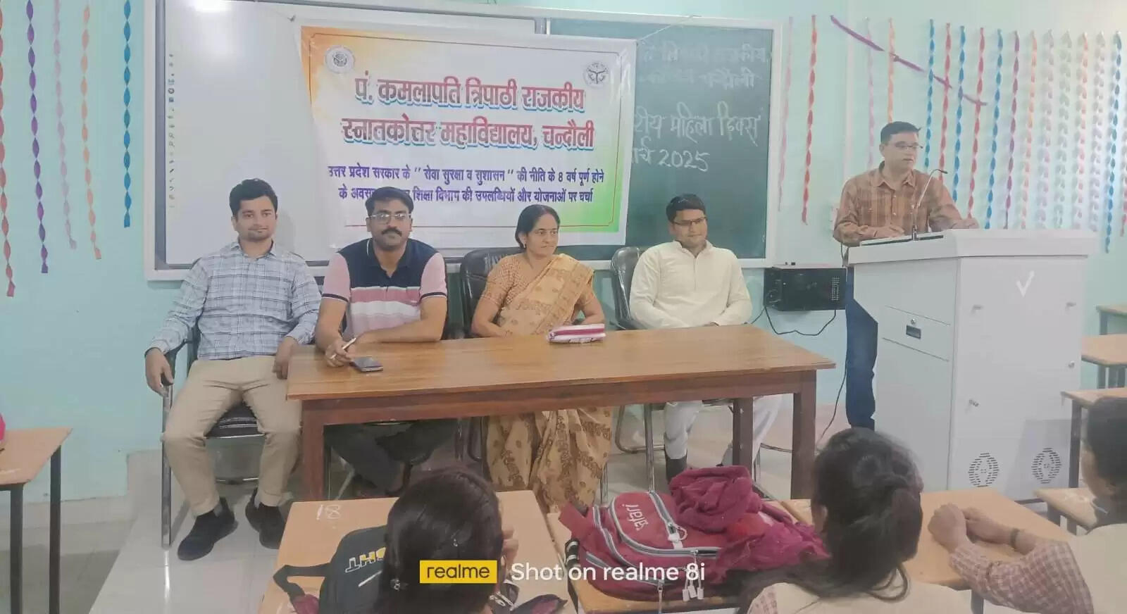 चंदौली जिले के पंडित कमलापति त्रिपाठी राजकीय स्नातकोत्तर महाविद्यालय चंदौली में उत्तर प्रदेश सरकार के सेवा, सुरक्षा एवं सुशासन के 8 वर्ष पूर्ण होने के अवसर पर उच्च शिक्षा विभाग की उपलब्धियां पर चर्चा परिचर्चा हुई । कार्यक्रम की अध्यक्षता महाविद्यालय की प्राचार्य डॉक्टर सुकृति मिश्रा के द्वारा की गई।