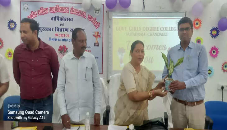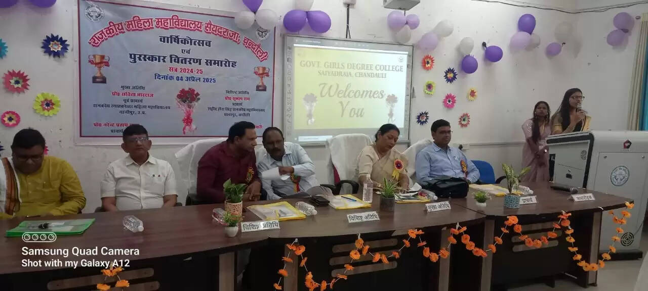 चंदौली जिले के सैयदराजा नगर पंचायत इलाके में स्थित राजकीय महिला महाविद्यालय में शुक्रवार को प्राचार्य प्रो. नरेंद्र प्रताप गुप्ता की अध्यक्षता में विद्यालय का तृतीय वार्षिकोत्सव एवं पुरस्कार वितरण समारोह का आयोजित किया गया। समारोह की मुख्य अतिथि प्रोफेसर राजकीय स्नातकोत्तर महिला महाविद्यालय गाजीपुर की पूर्व प्राचार्य सविता भारद्वाज एवं विशिष्ट अतिथि शहीद हीरा सिंह राजकीय महाविद्यालय धानापुर के प्रोफेसर सुभाष राम प्राचार्य एवं राजकीय महाविद्यालय नौगढ़ डॉ. अशोक कुमार यादव रहे ।