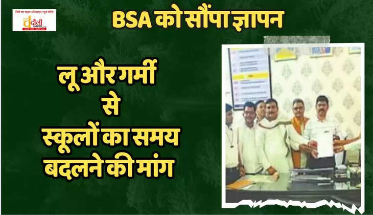 अध्यापकों ने बेसिक जिला बेसिक शिक्षा अधिकारी सत्येंद्र कुमार सिंह को ज्ञापन देते हुए कहा कि गर्मी को देखकर विद्यालय का समय सुबह 7:00 से 11:30 बजे तक कर दिया जाए। शिक्षकों ने इस दौरान कहा कि पूरे प्रदेश में गर्मी और भीषण लू चल रही है। ऐसे में बच्चों की सेहत के साथ-साथ शिक्षकों का भी ध्यान रखते हुए विद्यालय के समय में बदलाव किया जाना चाहिए। साथ ही स्कूलों का संचालन सुबह 7:00 से 11:30 तक का चाहिए।