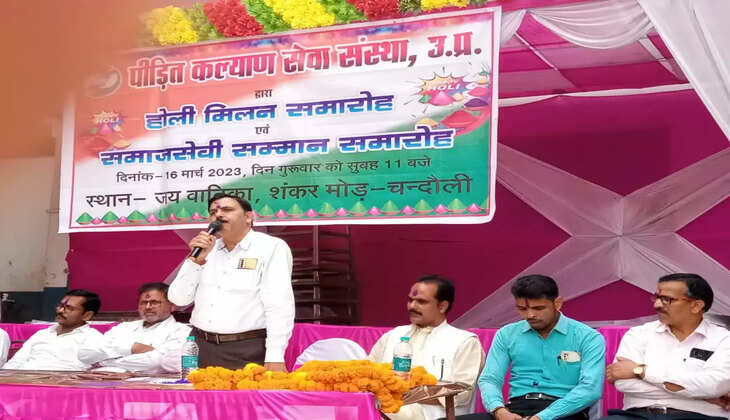 चंदौली जिले में पीड़ित कल्याण सेवा संस्था उत्तर प्रदेश के द्वारा होली मिलन तथा समाज सेवी सम्मान समारोह जय वाटिका लान नेगुरा मोड में आयोजित किया गया। इस समारोह में सभी सेवाभावी पदाधिकारियों व सदस्यों में 170 महिलाओं तथा 85 पुरुषों को अंग वस्त्र देकर सम्मानित किया गया।