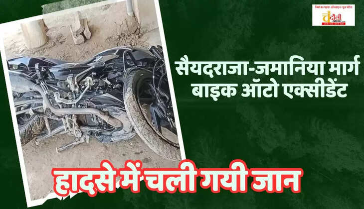चंदौली जिले के सैयदराजा थाने के लोकमनपुर गांव के शंकर मंदिर के समीप सैयदराजा-जमानिया मार्ग पर रविवार की शाम ऑटो और बाइक टकरा गईं। बाइक सवार युवक गंभीर रूप से घायल हो गया। लोग उसे अस्पताल ले जा रहे थे पर रास्ते में मृत्यु हो गई। युवक तीज के लिए पूजन सामग्री और मां की दवा लेकर घर लौट रहा था। सूचना पर पहुंची पुलिस ने शव को क़ब्जे में कर पोस्टमार्टम के लिए जिला अस्पताल भेज दिया है।