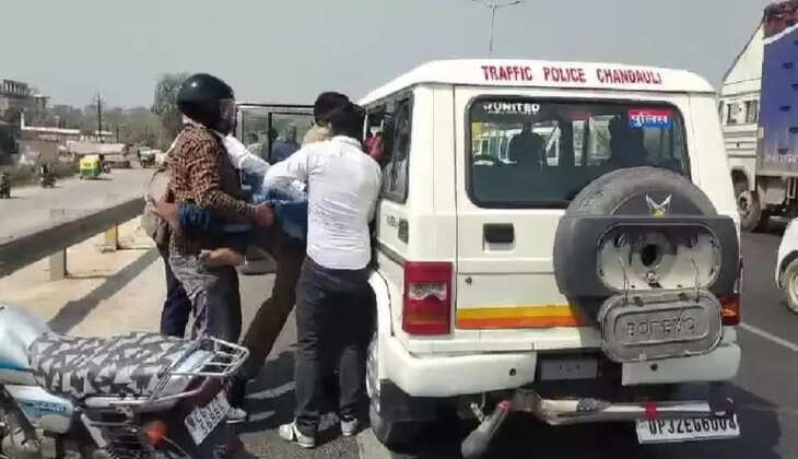 चंदौली जिले की सदर कोतवाली क्षेत्र के विकास भवन के समीप नेशनल हाईवे पर सोमवार को ट्रैफिक पुलिस की वाहन से एक बाइक सवार गंभीर रूप से घायल हो गया। इस दौरान वाहन में मौजूद पुलिसकर्मी ने आनन-फानन में पुलिस वाहन से घायल युवक को जिला अस्पताल में भर्ती कराया, जहां चिकित्सकों ने युवक की स्थिति गंभीर देखने के बाद मरीज को ट्रॉमा सेंटर के लिए रेफर कर दिया।