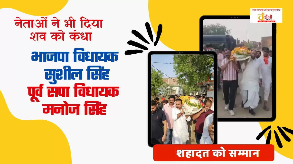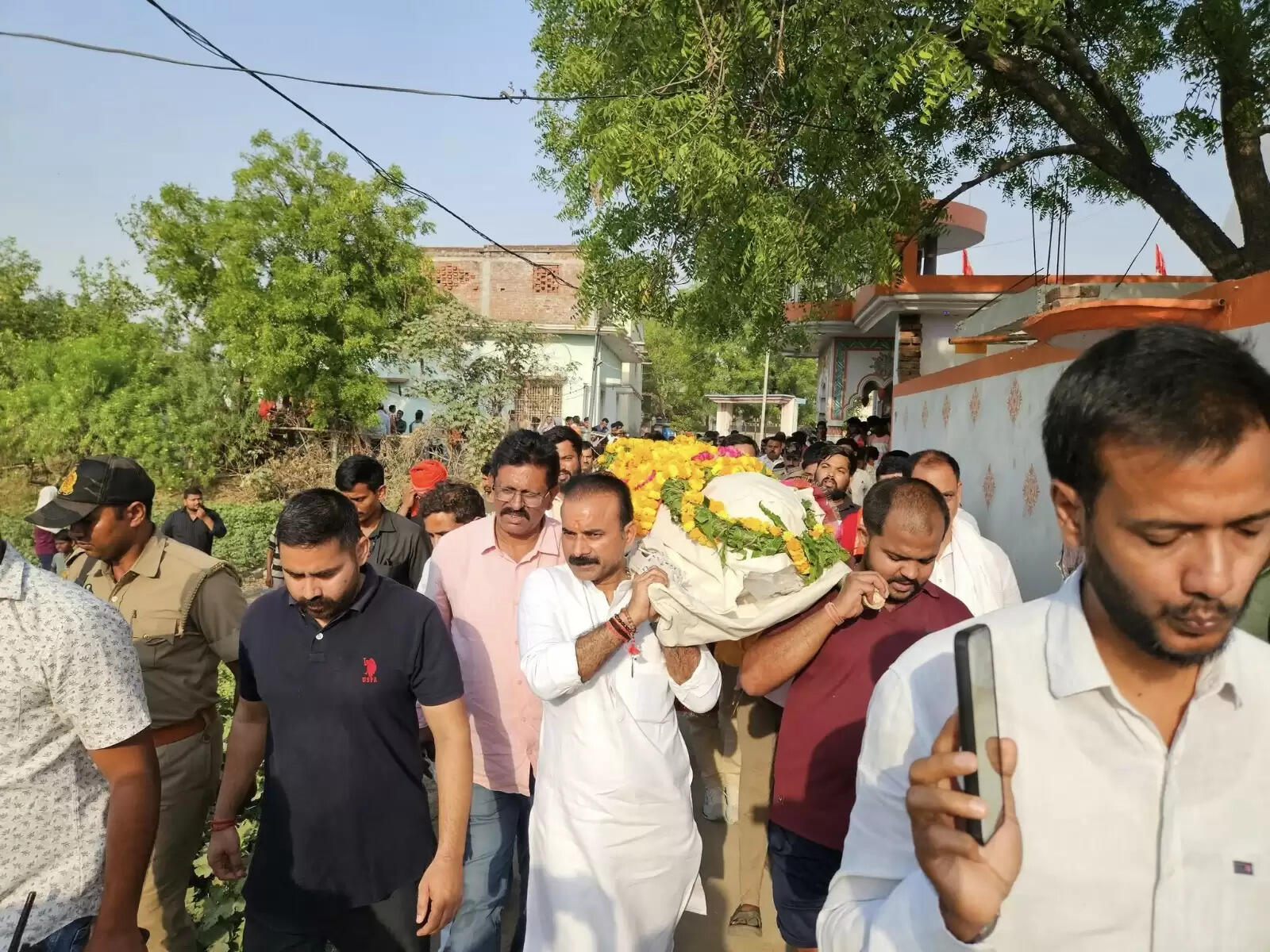 पुलिस के शहीद जवान को विधायक और पूर्व विधायक ने दिया कंधा, पशु तस्करों को पकड़ने में चली गयी थी जान