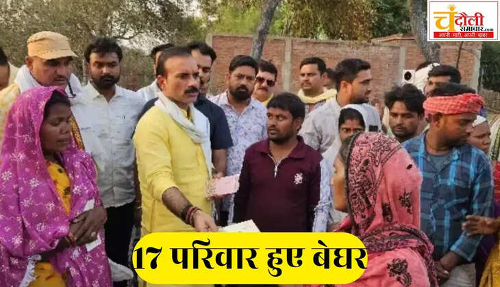 चंदौली के तम्बागढ़ में भीषण आग लगने से 17 गरीब परिवारों के घर जलकर राख हो गए। सैयदराजा विधायक सुशील सिंह ने घटनास्थल का दौरा कर पीड़ितों को नगद आर्थिक मदद और राशन किट वितरित किए। उन्होंने प्रशासन को मुआवजा दिलाने के निर्देश भी दिए।