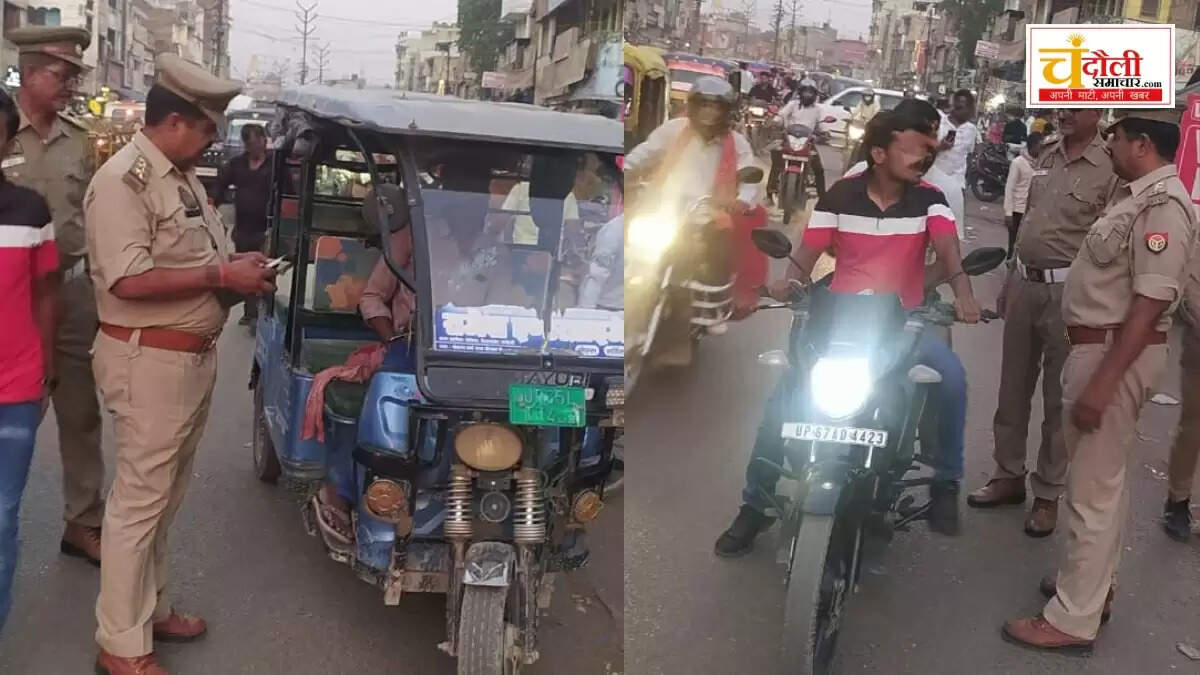 चंदौली जिले की यातायात पुलिस टीम चंदौली द्वारा क्षमता से अधिक सवारी बैठने वाले ई-रिक्शा और ऑटो रिक्शा चालकों के विरुद्ध चलाए गए विशेष चेकिंग अभियान के दौरान 22 ई-रिक्शा का चालान किया गया और बिना हेलमेट के वाहन चलाने वाले 101 लोगों पर कार्रवाई की गई। वहीं तीन सवारी वाले 13 वाहनों व 142 वाहनों का यातायात के विभिन्न धाराओं में चालान की कार्यवाही की गई है।