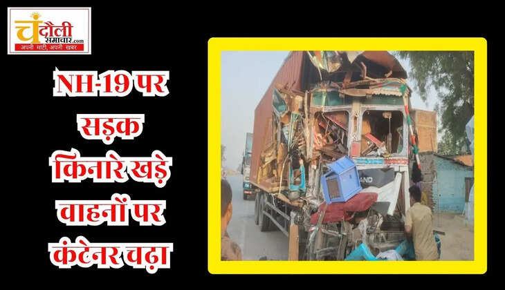 NH-19 पर सड़क किनारे खड़े वाहनों पर कंटेनर चढ़ा, सैयदराजा थाना क्षेत्र में 3 लोग गंभीर घायल