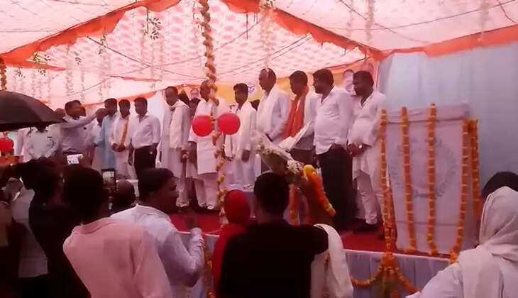 नगर पंचायत के अध्यक्ष पद के शपथ ग्रहण में दिखा नजारा, अफसर भी खिंचवा रहे थे विरोधी दल के नेताओं के साथ फोटो, कार्यक्रम समाप्त होने के बाद दोबारा मंच पर चढ़कर खींची गयी फोटो