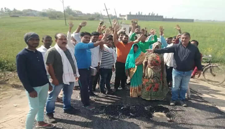 खराब सड़क बनने पर ग्रामीणों ने किया प्रदर्शन