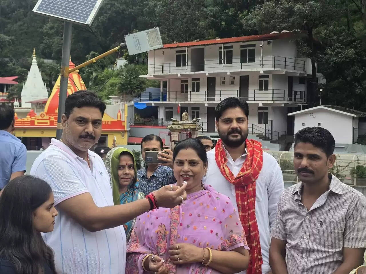 बाबा नीम करौली मंदिर में दर्शन के बाद केक काटकर राज्यसभा सांसद साधना सिंह ने मनाया अपना जन्मदिन