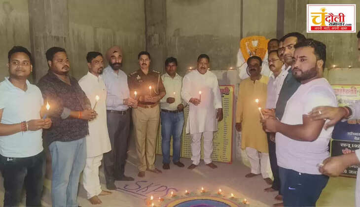 सैयदराजा स्थित शहीद स्मारक पर जलाए गए 1100 दीपकों की रोशनी से जगमग हुआ स्मारक