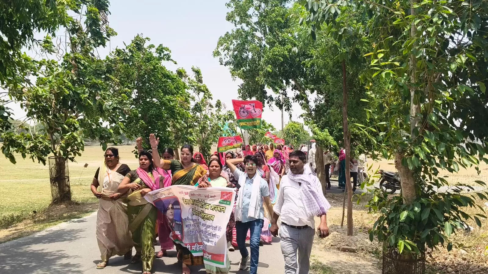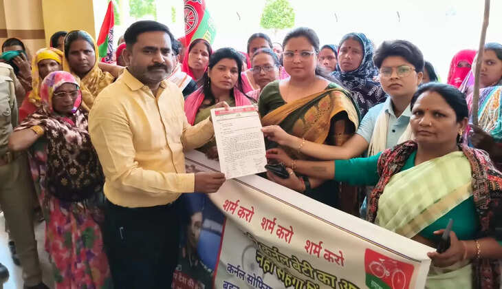 सपा की महिला इकाई का प्रदर्शन, भाजपा के मंत्री को जेल भेजने की मांग