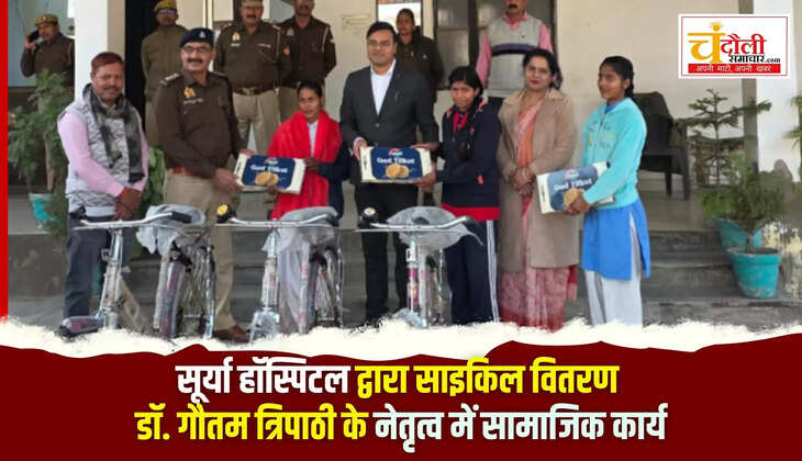 चंदौली जनपद के प्रतिष्ठित सूर्या हॉस्पिटल ने एक बार फिर चिकित्सा के साथ-साथ सामाजिक उत्तरदायित्वों का निर्वहन करते हुए मिसाल पेश की है। अस्पताल के प्रमुख डॉ. गौतम त्रिपाठी के नेतृत्व और डॉ. यशी त्रिपाठी के सहयोग से आर्थिक रूप से कमजोर और बेसहारा मेधावी छात्राओं के लिए साइकिल वितरण कार्यक्रम का सफल आयोजन किया गया। यह सराहनीय कदम समाजसेवी दुर्गेश सिंह की विशेष पहल पर उठाया गया, जिसे सूर्य हॉस्पिटल ने पूर्ण सहयोग प्रदान किया।