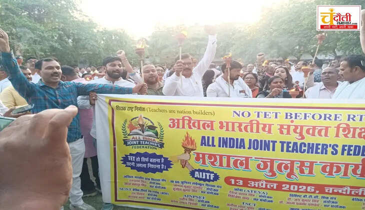 चंदौली में शिक्षकों ने मशाल जुलूस निकालकर TET अनिवार्यता का विरोध किया। शिक्षकों का कहना है कि सुप्रीम कोर्ट के फैसले से 2011 से पहले नियुक्त लाखों शिक्षकों की नौकरी पर खतरा मंडरा रहा है, जिसे बचाने के लिए कानून संशोधन जरूरी है।