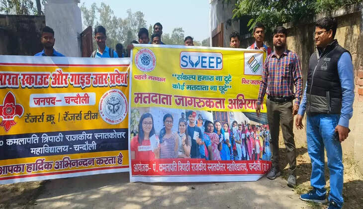 चंदौली जिले में राज्य निर्वाचन आयोग उत्तर प्रदेश के आदेश अनुसार पंडित कमलापति महाविद्यालय में स्विप योजनान्तर्गत मतदाता जागरूकता अभियान के माध्यम से विविध कार्यक्रम का आयोजन किया गया। जिसमें की प्रातः 11:00 से 12:00 तक 1 घंटे की अवधि के उपरांत निबंध व लोकगीत प्रतियोगिता का आयोजन किया गया। जिसमें महाविद्यालय के छात्र-छात्राओं ने बढ़ चढ़कर प्रतिभा किया। तदोपरांत मतदाता जागरूकता रैली का आयोजन किया गया। जिसमें महाविद्यालय के अनेक छात्र-छात्राओं ने रोवर्स रेंजर्स करने वाले विद्यार्थियों में सैकड़ो की संख्या में पूरे जोश व उत्साह के साथ संपन्न होकर हिस्सेदारी सुनिश्चित की।
