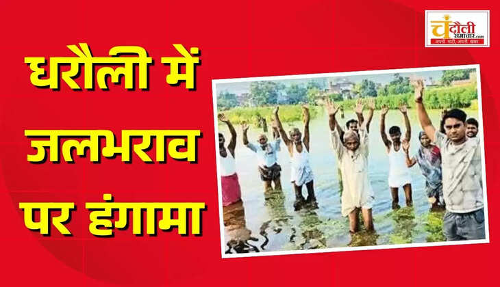 चंदौली सदर ब्लॉक के धरौली गांव में जलभराव से नाराज ग्रामीणों ने किया प्रदर्शन