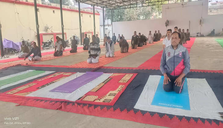 पुलिस लाइन में कराया जा रहा है योगाभ्यास