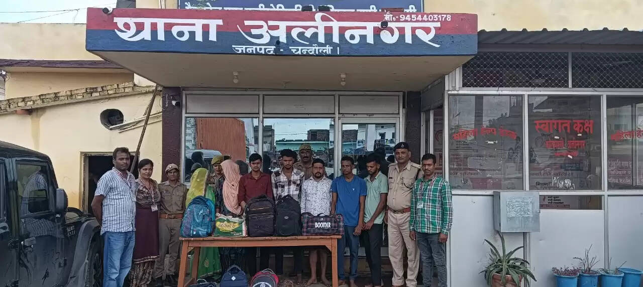 चंदौली जिले में अपराध व अपराधियों के विरुद्ध चलाए जा रहे विशेष अभियान के तहत अलीनगर पुलिस टीम व RPF की संयुक्त कार्रवाई में शुक्रवार को एक बड़ी सफलता हाथ लगी। पुलिस ने लोको कॉलोनी स्थित रेलवे ओवरब्रिज के पास चेकिंग के दौरान 58.66 लीटर अवैध अंग्रेजी शराब बरामद की, जिसकी अनुमानित कीमत लगभग 70 हजार रुपये आंकी गई है। इस दौरान 7 तस्करों (5 पुरुष व 2 महिलाएं) को मौके से गिरफ्तार किया गया।