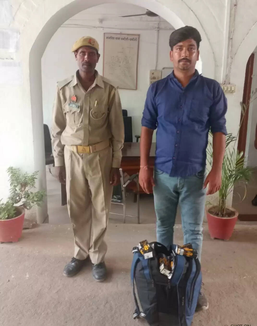 गिरफ्तार युवक की पहचान प्रकाश दूबे पुत्र शिवशंकर दूबे, निवासी ग्राम विश्रामपुर, पोस्ट खुरका, थाना इंद्रपुरी, जनपद रोहतास (बिहार), उम्र 22 वर्ष के रूप में हुई है। उसके पास एक पिट्ठू बैग था, जिसकी तलाशी लेने पर उक्त मात्रा में नाजायज अंग्रेजी शराब बरामद हुई।