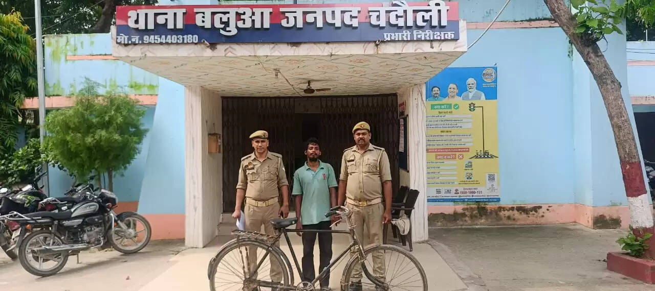 चंदौली जनपद में अपराधों पर अंकुश लगाने के लिए चलाए जा रहे अभियान के तहत, बलुआ पुलिस ने एक शातिर चोर को गिरफ्तार किया है। पुलिस ने उसके कब्जे से चोरी की एक साइकिल भी बरामद की है। यह गिरफ्तारी पुलिस अधीक्षक आदित्य लांग्हे के निर्देश और अधिकारियों के कुशल पर्यवेक्षण में की गई है।