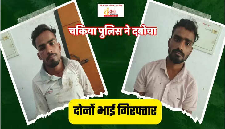 चकिया कोतवाली पुलिस से मिली जानकारी के अनुसार बताया जा रहा है कि पुलिस क्षेत्राधिकारी रघुराज के पर्यवेक्षण और थानाध्यक्ष मिथिलेश कुमार तिवारी के नेतृत्व में बुधवार को मुखबिर की सूचना पर थाने में दर्ज मुकदमा अपराध संख्या 119-2023 के वांछित अभियुक्तों में से दो को गिरफ्तार करने में सफलता पाई है। पकड़े गए अभियुक्तों का नाम राजन मौर्य व कुंदन मौर्य है। दोनों सिकंदरपुर गांव के रहने वाले महेंद्र मौर्य के बेटे हैं। इनकी गिरफ्तारी चंदौली जिले के चुप्पेपुर मोड़ के पास से की गई है तथा समस्त विधिक कार्यवाही करते हुए न्यायालय में पेश कर जेल भेज दिया गया है।
