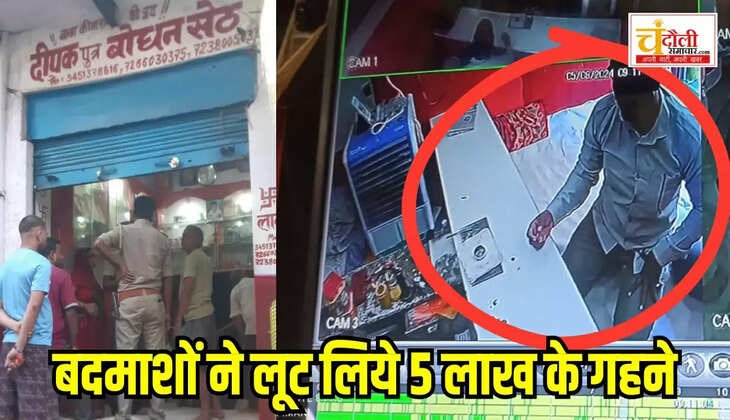 बताते चलें कि धानापुर कस्बा में बाइक से पहुंचे दो बदमाशों ने आभूषण की दुकान पर ग्राहक बनकर पहुंचे और अंगूठी दिखाने के लिए दुकानदार से बोले और गहना देखने लगे दुकानदार ने सोने की अंगूठी वाले डिब्बे को बाहर निकालकर दिखाने लगा, तभी वहीं पर एक चोर ने दस लाख रुपए मूल्य के ज्वेलरी लूट कर मौके पर से फरार हो गया। घटना के बाद पूरे इलाके में हड़कंप मच गया।