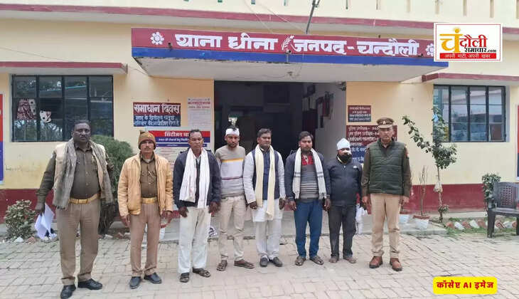 चंदौली जनपद में अपराध एवं अपराधियों के विरुद्ध चलाए जा रहे अभियान के तहत धीना थाना पुलिस ने बड़ी निरोधात्मक कार्रवाई की है। पुलिस अधीक्षक आदित्य लांग्हे के निर्देशों के क्रम में, पुलिस टीम ने जमुर्खा गांव में शांति व्यवस्था को प्रभावित करने की आशंका के चलते पांच अभियुक्तों को गिरफ्तार किया है।