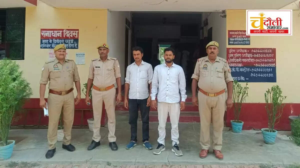 गिरफ्तार किए गए दोनों अभियुक्त संदीप उर्फ मंटू पुत्र बेचन एवं अजीत खरवार पुत्र मुन्ना खरवार, निवासीगण वीरासराय थाना धीना—के विरुद्ध वर्ष 2019 में मुकदमा संख्या 38/19, धारा 323/504 भारतीय दंड संहिता के तहत मामला दर्ज किया गया था। दोनों के विरुद्ध न्यायालय से गिरफ्तारी वारंट जारी हुआ था। लेकिन वे लंबे समय से फरार चल रहे थे।