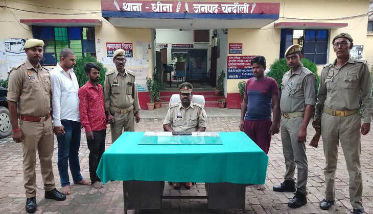 मुखबिर ने बताया कि वांछित अभियुक्तगण रमेश बिन्द पुत्र रामकिशुन बिन्द निवासी मेढ़ान थाना धीना जनपद चन्दौली और नन्दा उर्फ नन्दलाल पुत्र महामुनी यादव निवासी ग्राम नदहा थाना धीना जनपद चन्दौली के साथ मिट्ठू उर्फ मिथुन कुमार पुत्र स्व. दुखी राम निवासी ग्राम वीरासराय थाना धीना जनपद चन्दौली मिनाक्षी स्कूल के पास स्थित काली मन्दिर वीरासराय पर मौजूद हैं। इस सूचना पर प्रभारी निरीक्षक धीना द्वारा दबिश देकर उपरोक्त तीनों अभियुक्तों को करीब 15.15 बजे गिरफ्तार कर हिरासत में ले लिया गया।