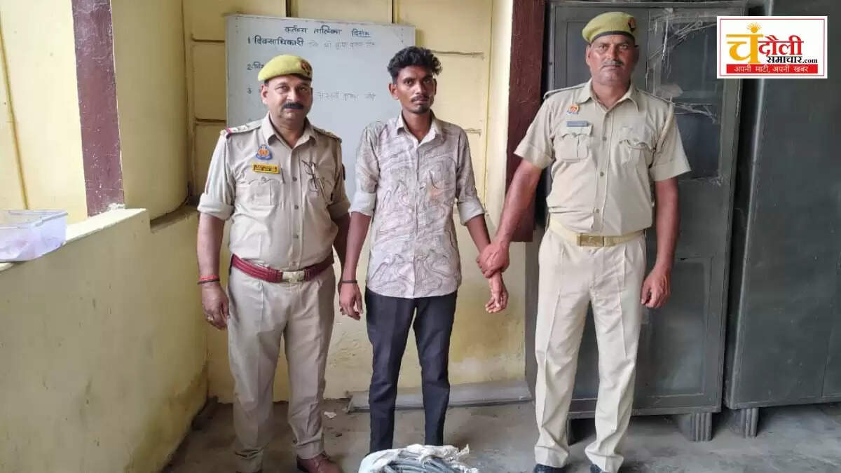 चंदौली जिले के पुलिस अधीक्षक आदित्य लांग्हे के निर्देशन और अपर पुलिस अधीक्षक (सदर) अनन्त चन्द्रशेखर तथा क्षेत्राधिकारी पीडीडीयू नगर राजीव सिसोदिया के पर्यवेक्षण में अपराध पर नियंत्रण के लिए चलाए जा रहे अभियान के तहत अलीनगर पुलिस को बड़ी सफलता हाथ लगी है। सोमवार को मुखबिर की सूचना पर अलीनगर थाना क्षेत्र के बरहुली मोड़ के पास पुलिस टीम ने एक संदिग्ध व्यक्ति को पकड़कर उसके कब्जे से 40 किलो 750 ग्राम चोरी की केबल बरामद की है।