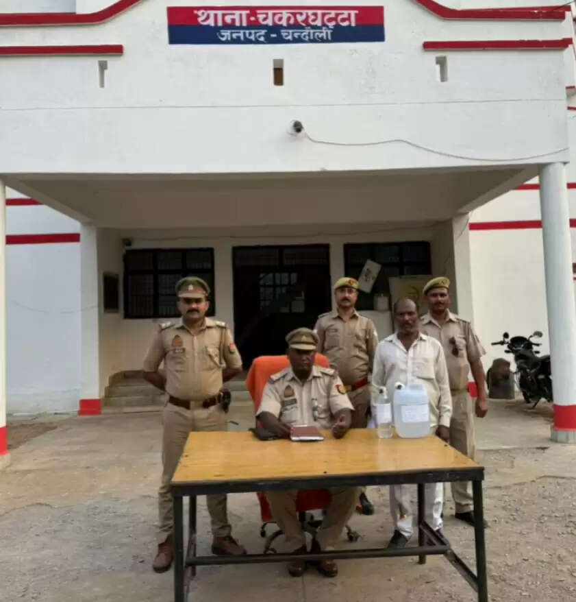 मिली जानकारी के अनुसार मुखबिर से सूचना मिलने पर थाना चकरघट्टा पुलिस टीम ने दबिश देकर ग्राम नर्वदापुर निवासी राजेन्द्र कुमार (उम्र लगभग 59 वर्ष) को गिरफ्तार किया। उसके पास से एक प्लास्टिक के पिपिया में भरी हुई कुल 05 लीटर कच्ची देशी शराब बरामद हुई।