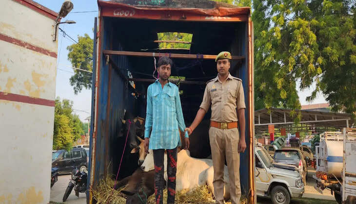 बिहार बार्डर के समीप चेकिंग में पशु तस्कर अरेस्ट, कंटेनर से 29 जानवर भी बरामद