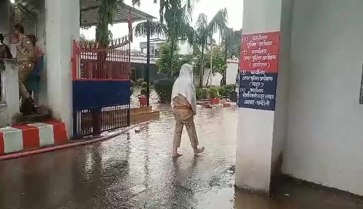 चंदौली जिले की पुलिस लाइन में बारिश का पानी भर जाने से पुलिस लाइन झील बन गई। पुलिसकर्मी जूता हाथ में लेकर लेकर आते जाते नजर आए। यह हालत होने के बाद पुलिस वाले अधिकारियों व सरकार को कोसते नजर आए।