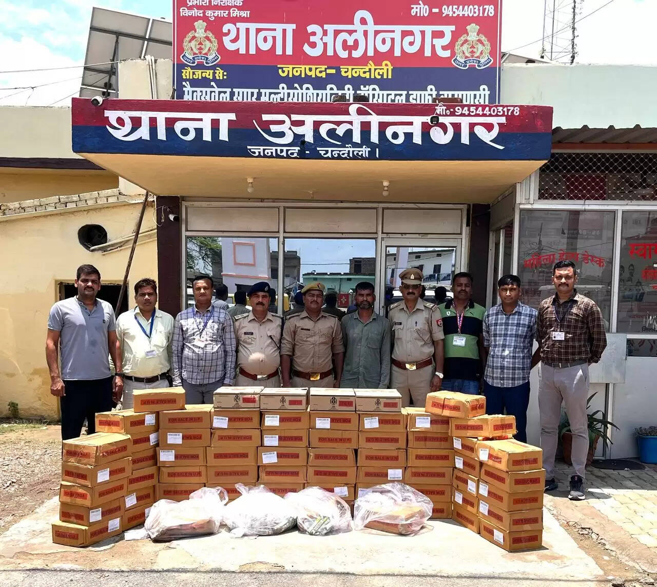 चंदौली जिले में पुलिस अधीक्षक आदित्य लांग्हे के निर्देशन में चलाए जा रहे अवैध शराब व अपराध नियंत्रण अभियान के तहत थाना अलीनगर व आरपीएफ की संयुक्त कार्रवाई में मंगलवार को एक शराब तस्कर को मालगाड़ी में शराब लादते हुए रंगे हाथ गिरफ्तार कर लिया गया। अपर पुलिस अधीक्षक सदर अनन्त चन्द्रशेखर (IPS) व क्षेत्राधिकारी पीडीडीयू नगर राजीव सिसौदिया के पर्यवेक्षण में की गई इस कार्रवाई में कुल 610.56 लीटर देशी व अंग्रेजी शराब बरामद हुई है, जिसकी अनुमानित कीमत करीब 9 लाख रुपये है।